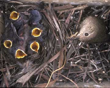 After consulting with her husband, they fixed on their mode of procedure. They built a bridge of straw and hair directly over the two eggs, making a second story in the house, thus leaving the two eggs below out of the reach of the warmth of her body. In the upper apartment she laid four eggs, and reared her four children.