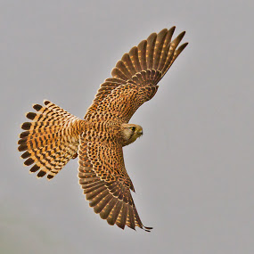 Kestrel hovering over by day