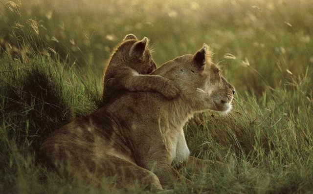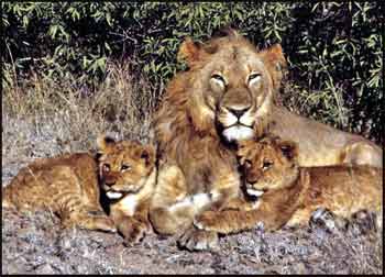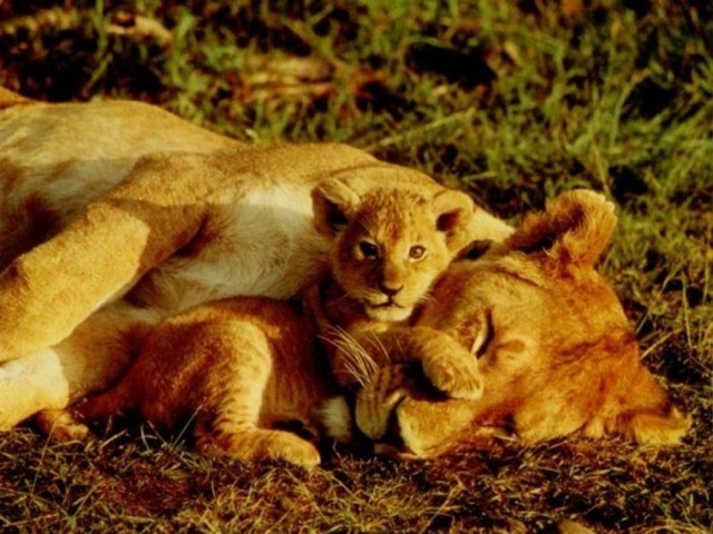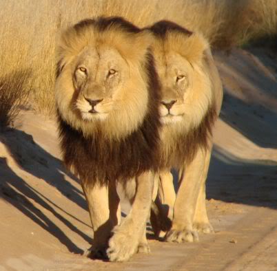 The lions are well camouflaged with their light brown colors creeping through the tall brush and dry grass and sometimes they work as a team to sneak up on the animals they want for dinner.