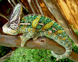 The little animal I speak of is a chameleon, and his tongue is not the only droll thing about him. His eyes are very curious. They are large and round, and stick out like big beads on the side of his head.