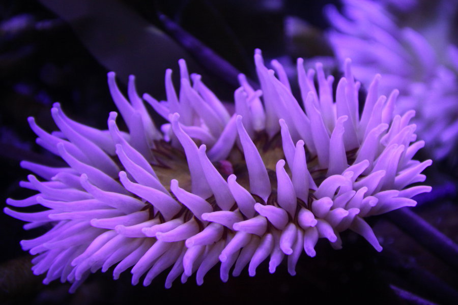 In almost every pool, hidden under the long leaves of the plants, we found such beautiful anemones, bright green and violet, rose color and gray. Some of them are shaped like a daisy, and these are very funny; for when any one takes hold of them, they get very angry, and throw out long, white threads from their body, and try to strike the fingers that touch them, and all these little threads are poisonous.