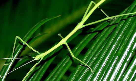 The walking-stick insects, or spectres, are equally curious. These are long, cylindrical insects, often nearly a foot in length, and of the exact color of pieces of greenish or brown sticks. If they have wings, these fold up closely, and are concealed under wing-covers of the same stick-like appearance; while the head and legs are so shaped and jointed as either to fit closely on to the stick-like body, or to appear like branched twigs. These creatures hang about shrubs in the forest, and can seldom be distinguished from small twigs and branches, which have fallen from the trees overhead. They remain quite motionless during the day, and feed at night. They hang across the foliage, holding on by two or three of their legs only, while the others are closely fitted to the body, and they thus give themselves that unsymmetrical appearance which belongs to accidentally broken twigs. Wonderful indeed are the works of the Maker of all!